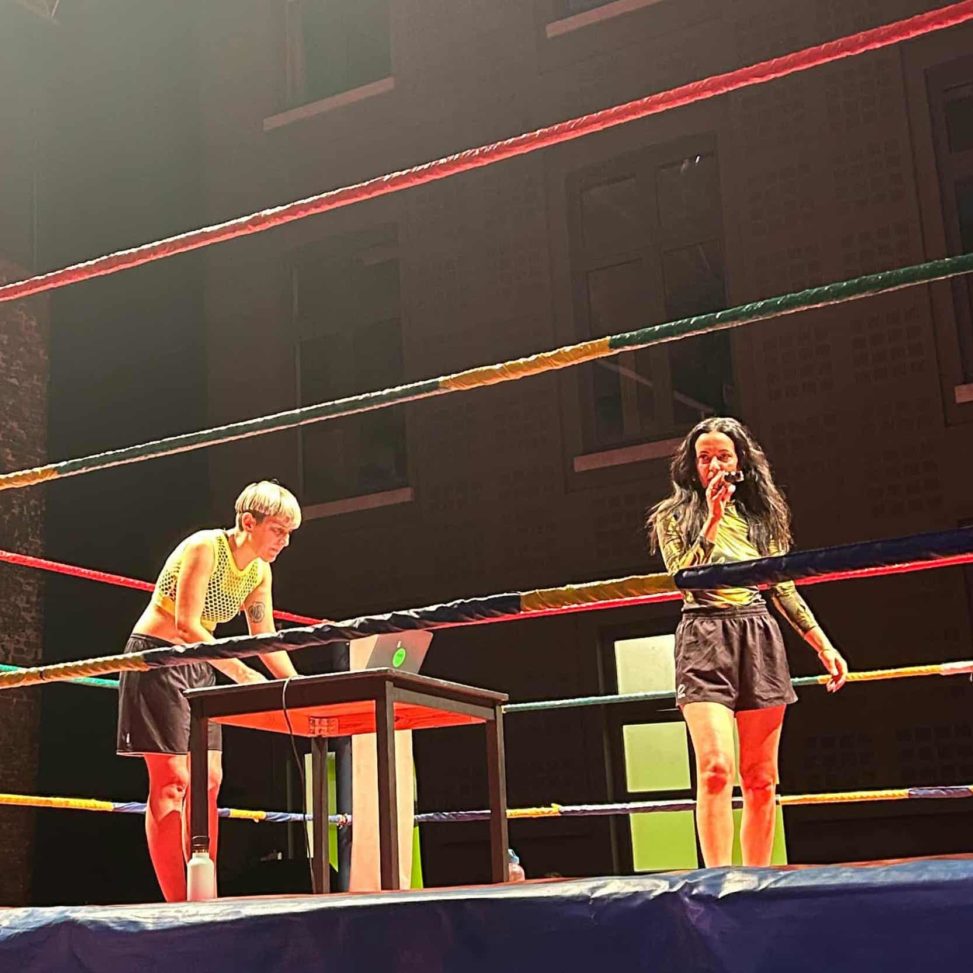 “X et excès” is a performance created for the 10th anniversary of Homografia, bringing together poet Rim Battal and musician Isa Stragliati. Together, they explore the body as a site of identity, trauma, power, and resistance. Rim Battal’s evocative text is a meditation on the body’s excesses and limits, delivered through her intense, fluid voice. Isa Stragliati’s live music, with deep hypnotic rhythms and raw techno beats, offer a dark, sensual soundscape that both complements and challenges the poetry. “X et excès” examines the body not only as a personal expression but also as a site of political struggle. It intertwines themes of power, gender, and identity, creating an immersive, visceral experience where sound, language, and the body collide.