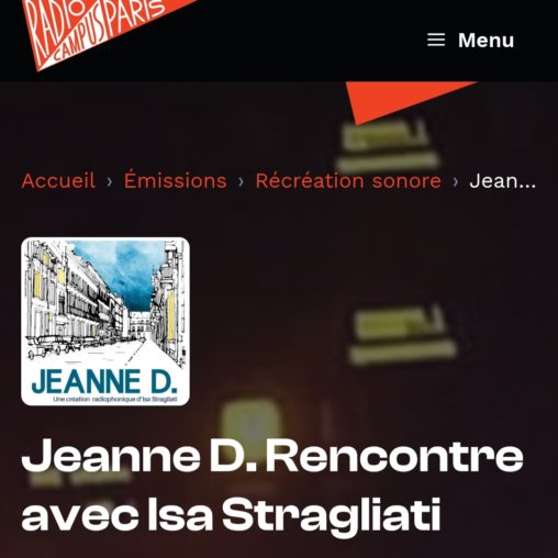Un entretien mené par Jérôme Massela pour annoncer la rediffusion de Jeanne D. sur Radio Campus Paris. On parle d’écriture vs spontanéité au tournage, de rencontres, de posture…